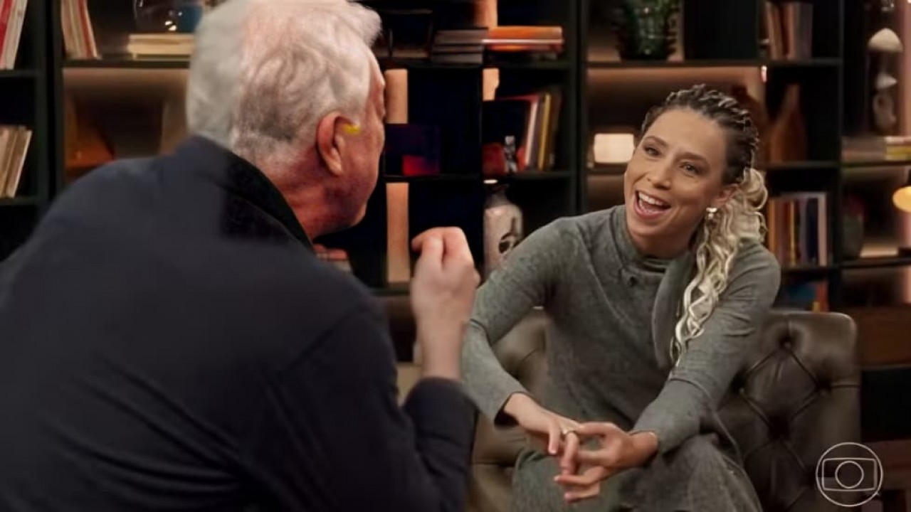 Thalita Carauta surpreendeu na madrugada desta terça-feira (5) ao conceder uma entrevista para Pedro Bial. A intérprete de Leidi em Mania de Você exibiu a aliança e deixou o apresentador surpreso. "Está casada?", perguntou ele.